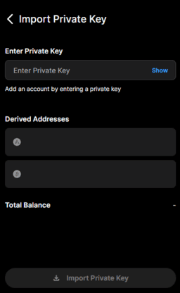 In the Accounts screen, select the Imported tab. Click on Import private key.